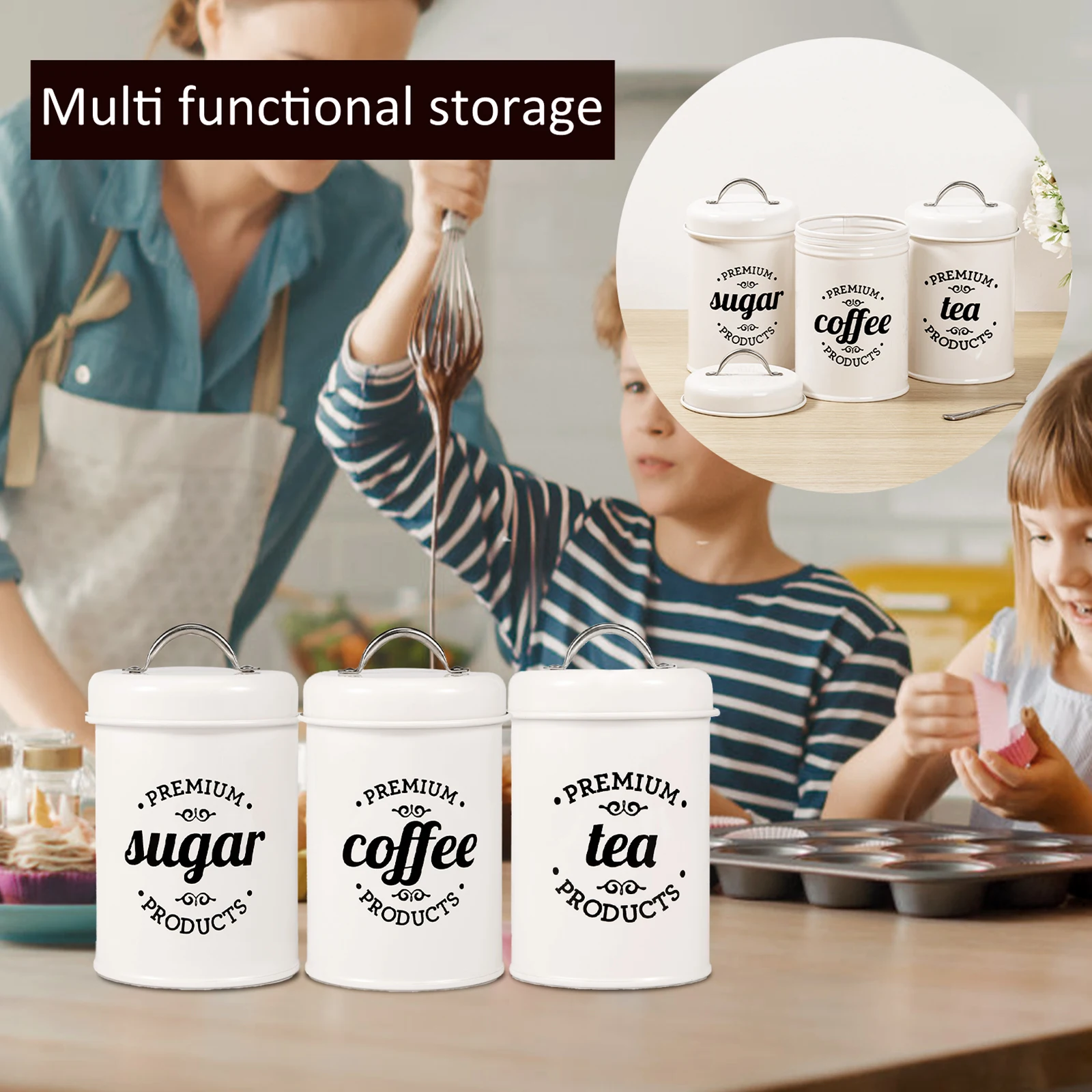 ✨ Keep your pantry organized and stylish! 🌟 What it is - Our 3-piece Tea Coffee Sugar Canisters Set is designed to provide a premium storage solution for your kitchen essentials. Made from durable metal, these elegant canisters feature airtight seals to keep your coffee, tea, and sugar fresh and full of flavor. 💖 Why do you need it? - **Organized storage**: Say goodbye to clutter and hello to a neat, organized pantry! - **Versatile use**: Perfect for coffee, tea, sugar, flour, or snacks – a multifunctional storage solution! - **Space-saving design**: Compact size makes these jars ideal for any countertop or shelf. - **Easy identification**: Each canister is labeled for quick access and enhanced organization. 💕 Why do you love it? - **Elegant look**: Adds a touch of sophistication to your kitchen decor. - **Easy to clean**: The metal material ensures hassle-free cleanup and maintenance. - **Sealed freshness**: Keep moisture and dust away with our well-fitted lids. 🌱 To use, simply fill each canister with your desired contents and place them on the countertop or in your pantry. With a labeled design, you'll easily find what you need! 🛍️ Enjoy a tidy and stylish kitchen with our exclusive set! Order now and experience the difference in your kitchen organization!