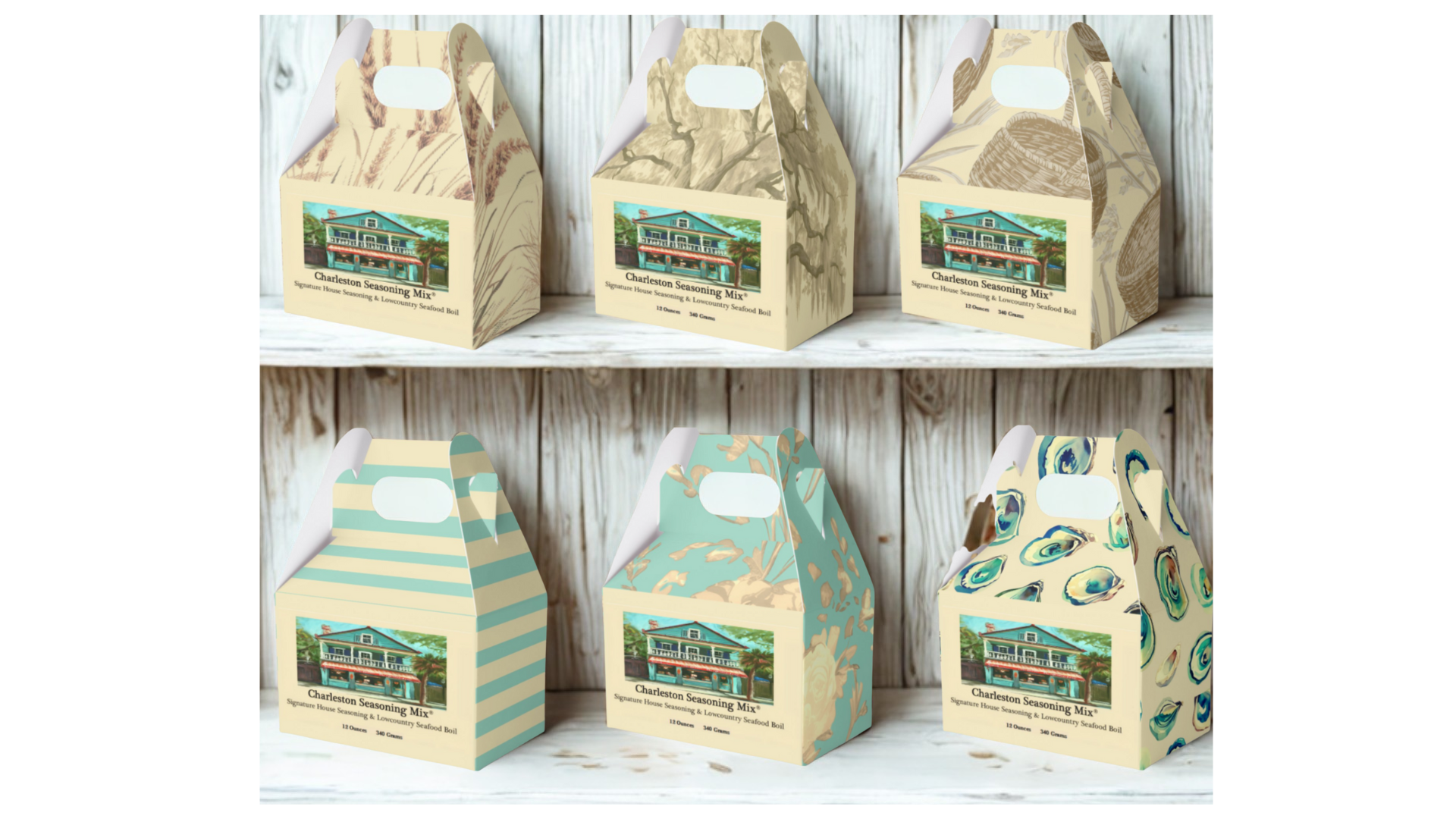 Gift box contains: (1) 6 Oz. bag of Signature House Seasoning and (1) 6 Oz. bag of Lowcountry Seafood Boil.