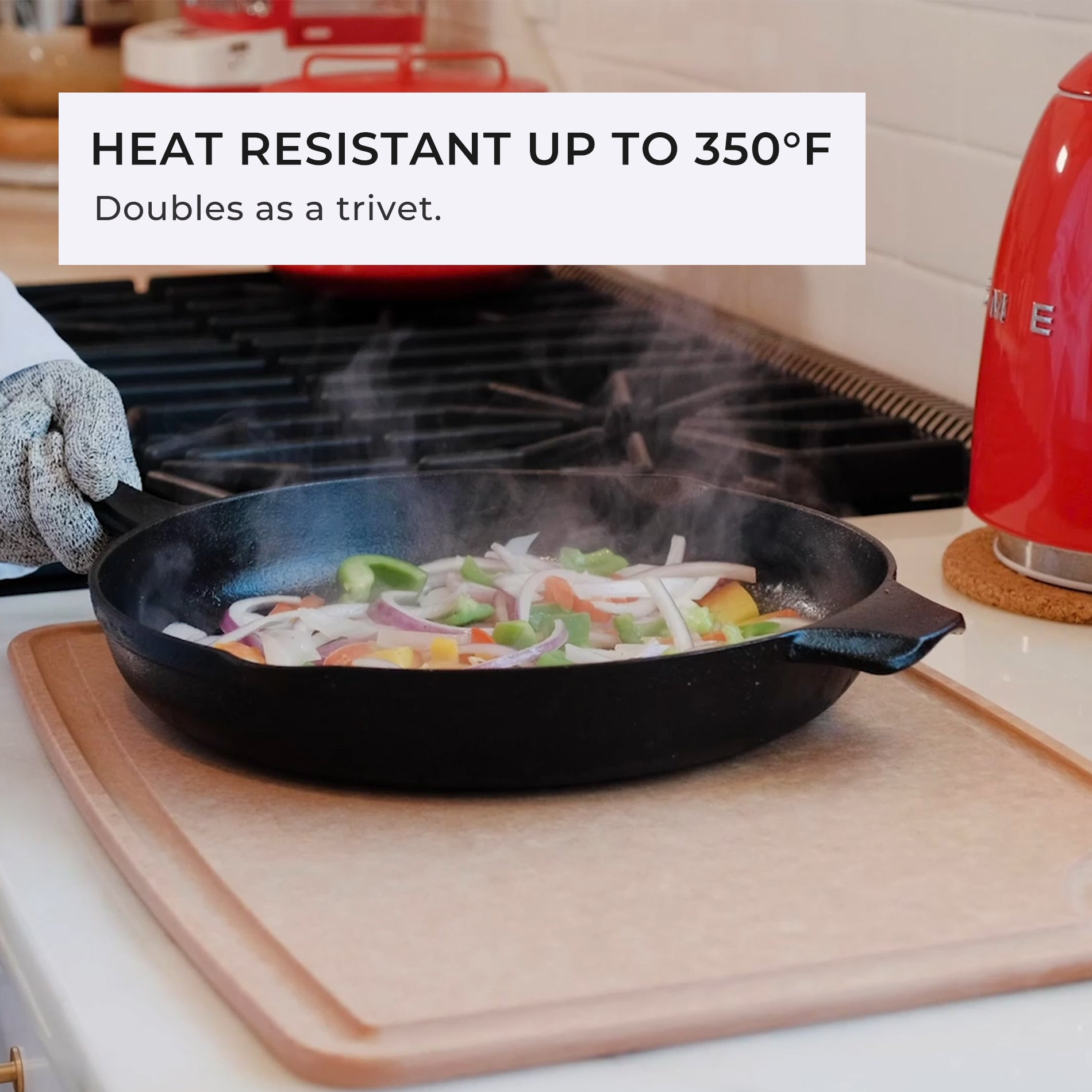 - Made in the USA from high-density pine leaf sustainable material, this fiberwood 10"x 13"x 1/4” inch (24 x 33 x 0.63cm) cutting board is perfect for daily meal preparation; No matter veggies or meat, the reversible design allows you simply flip the board over and explore your endless options with both sides for different food types.