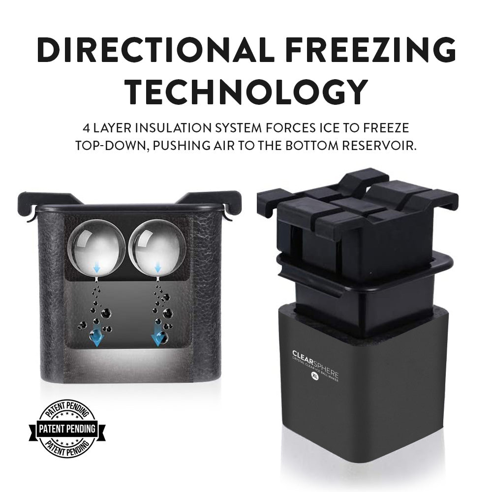 Clearsphere XL uses a patent-pending directional freezing method to control the direction that water freezes, pushing all the air out of the ice ball.