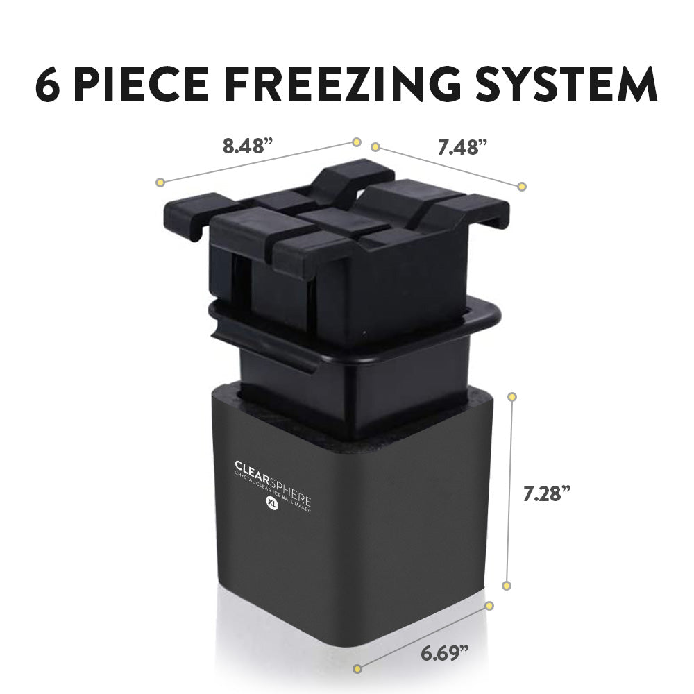 - 6 piece system Includes silicone ice ball mold, insulated freezing chamber, and integrated ice ball storage box.
