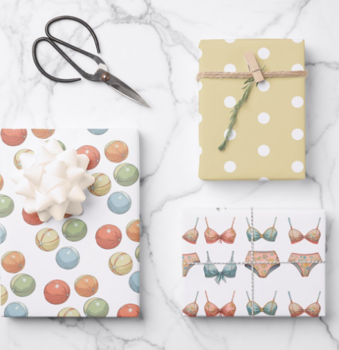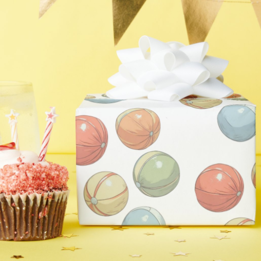 Beach balls and bikinis with a polka dot companion are a fun way to wrap your presents! Coordinates with the "Cheers" gift tag with an Aperol Spritz recipe on the back.