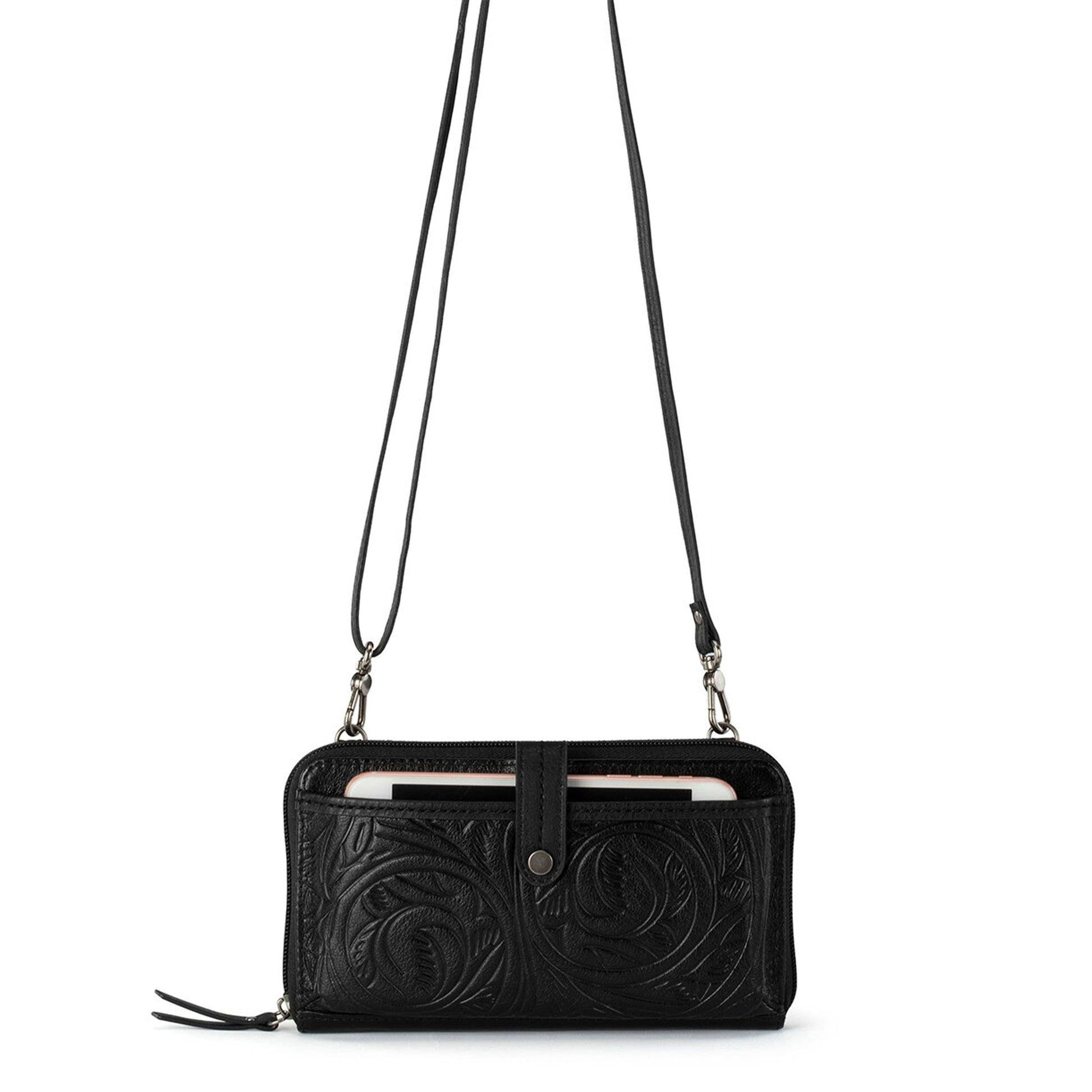 Iris Smartphone Wallet - Leather - Black Leaf Embossed