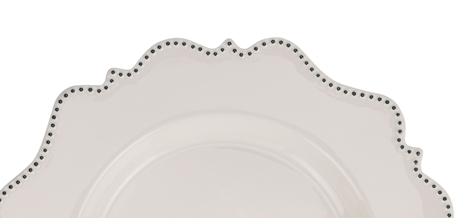 IVORY WITH Green BEADED SCALLOPED CHARGER