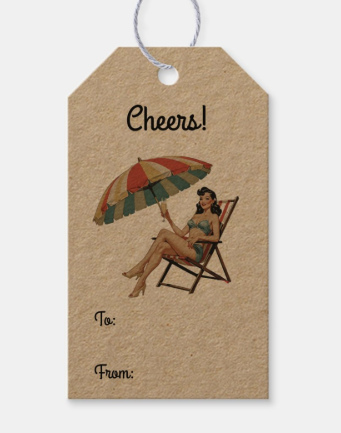 The "Cheers!" gift tag is perfect for the spritz lover! Add to a wine bag with a bottle of prosecco or St-Germain Liqueur and you have a personalized gift including an Aperol Spritz recipe on the back! The Beach Balls and Bikini wrapping paper coordinates is available as well.