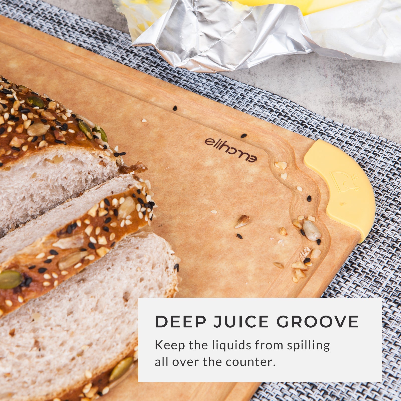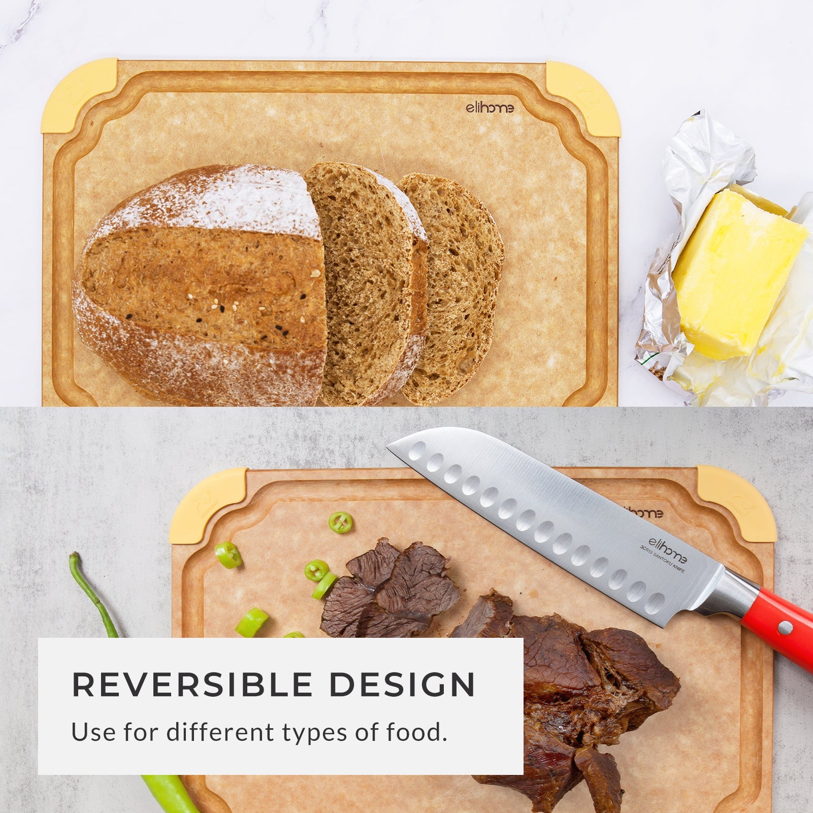 Crafted from sustainable high-density pine leaf fiberwood, this cutting board is the perfect size for daily meal prep. Its double-sided, reversible design allows you to easily switch sides for different food types, enhancing both hygiene and convenience.