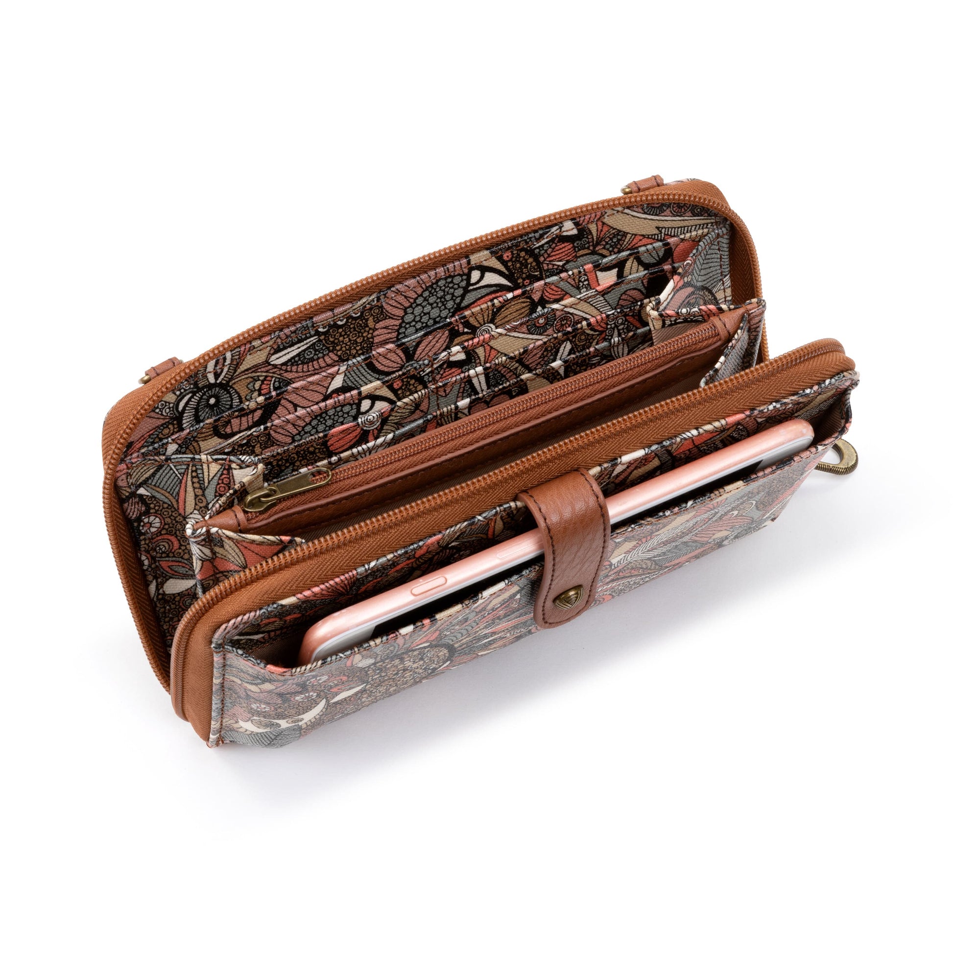 Wristlet, crossbody or smartphone bag? The choice is yours with our Smartphone Wallet. The roomy wallet construction is bolstered by a secure tech pocket designed to stow most smartphones. Delivered with a detachable wristlet loop and an optional crossbody strap you can adjust for the best fit, this small-but-mighty style keeps things light. Features an ornate print commissioned exclusively for us.