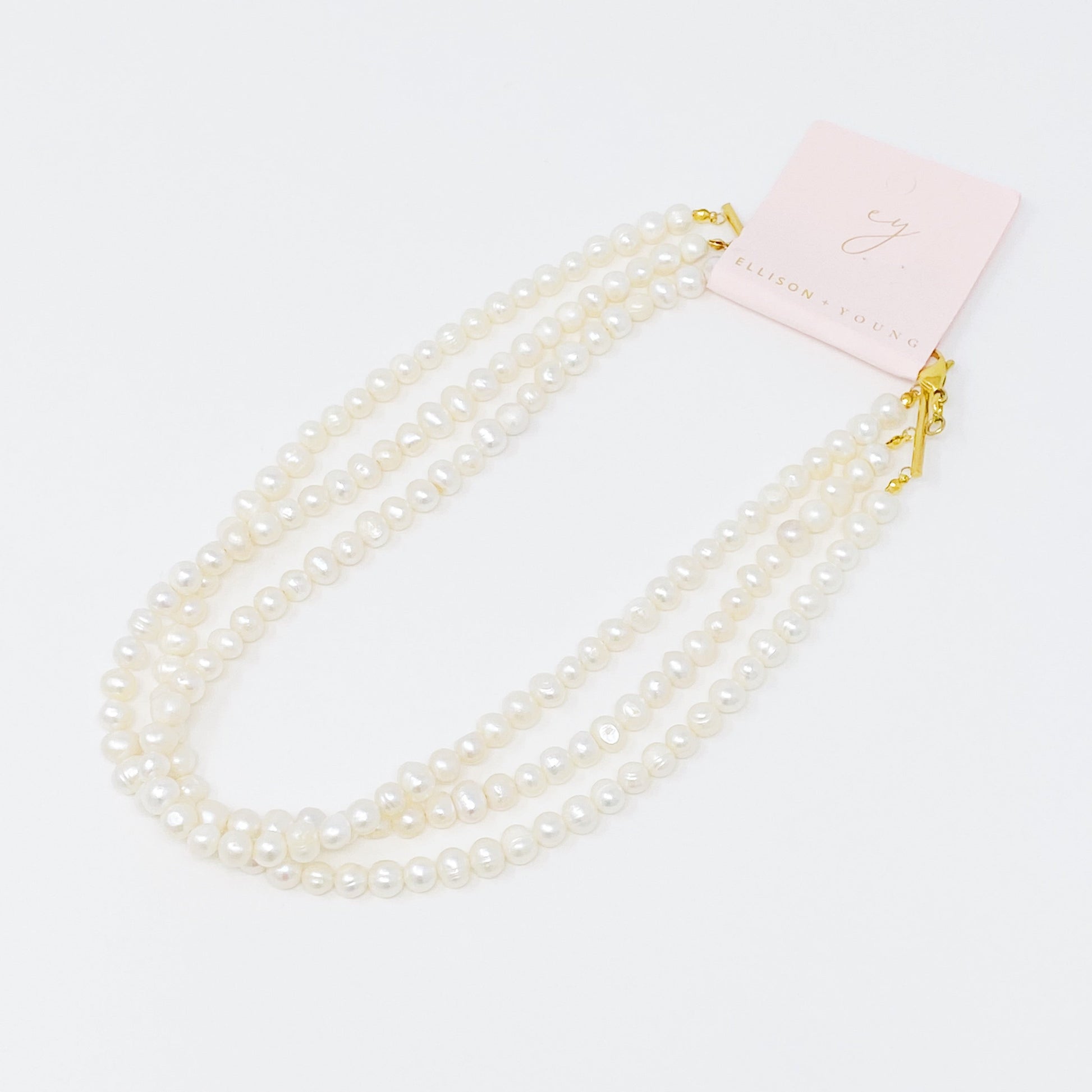 This genuine freshwater pearl necklace is absolutely stunning! 3 strands come in this one piece and great to dress up or down!